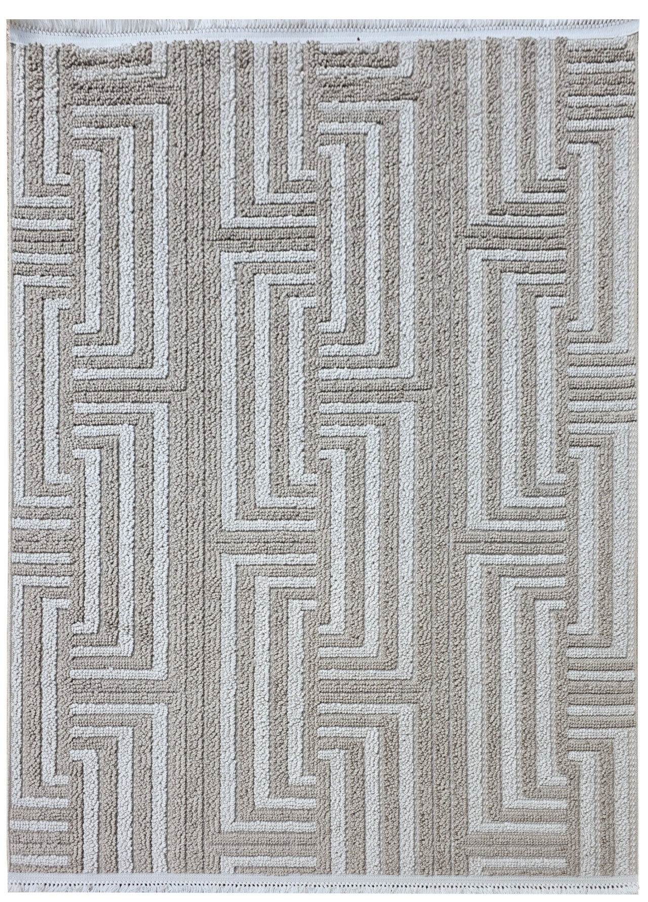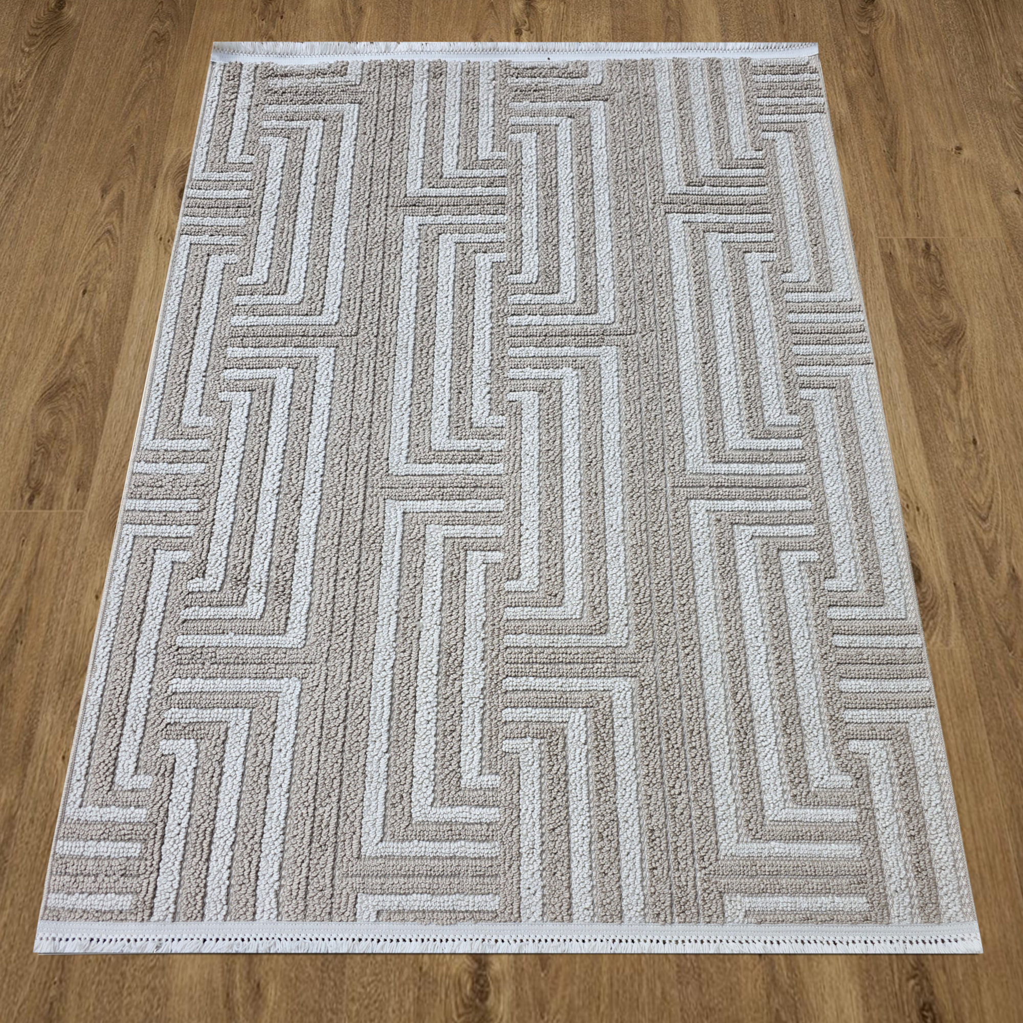 Dywan beżowy w jodełkę z frędzlami
