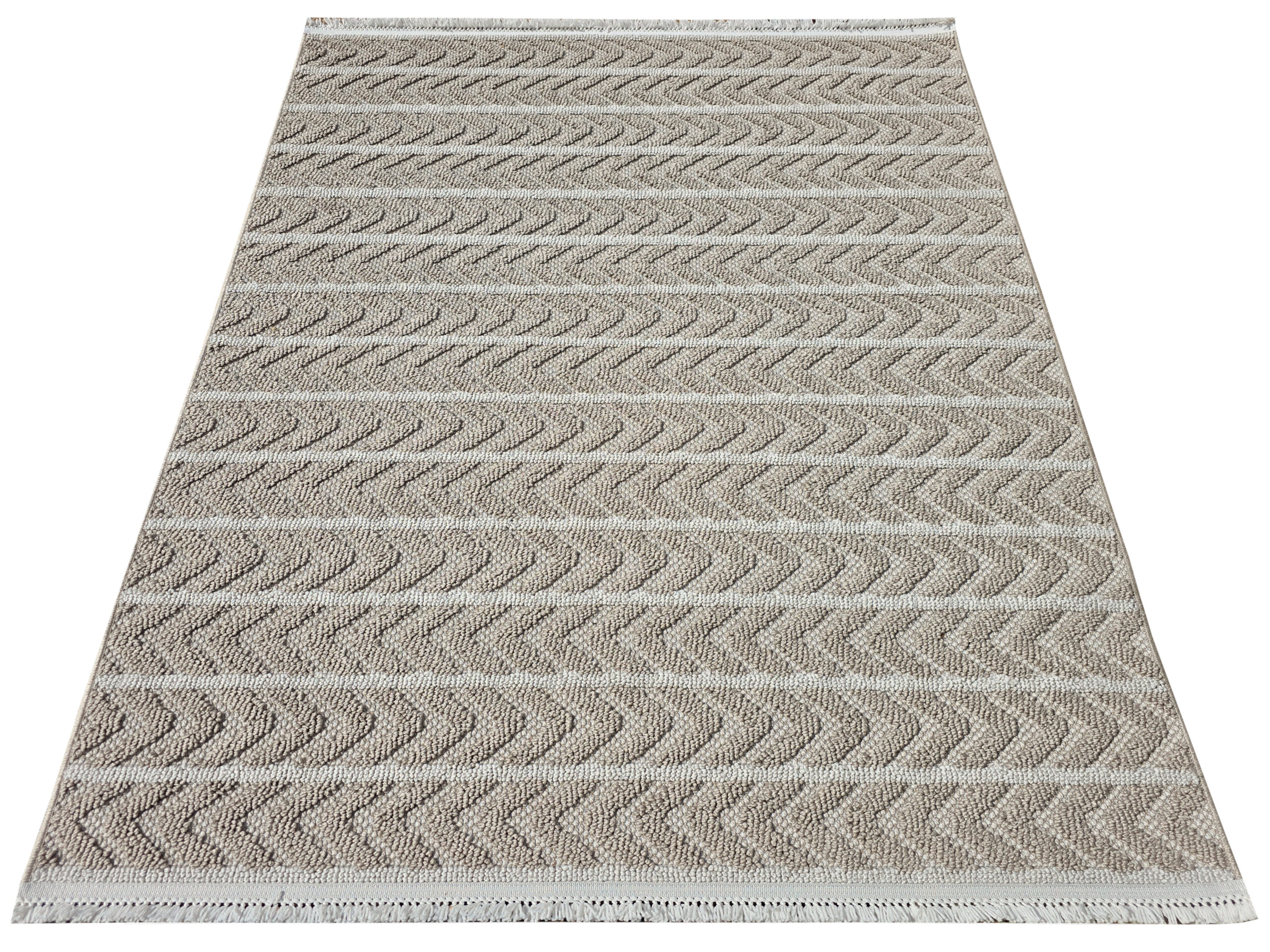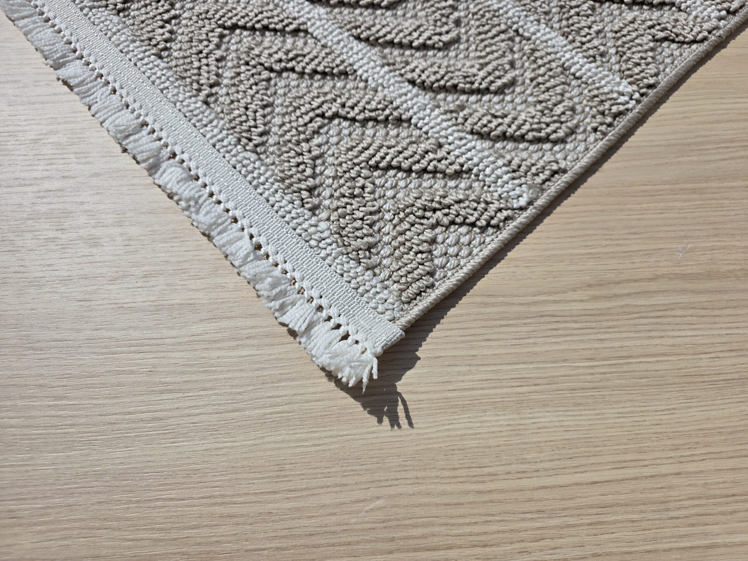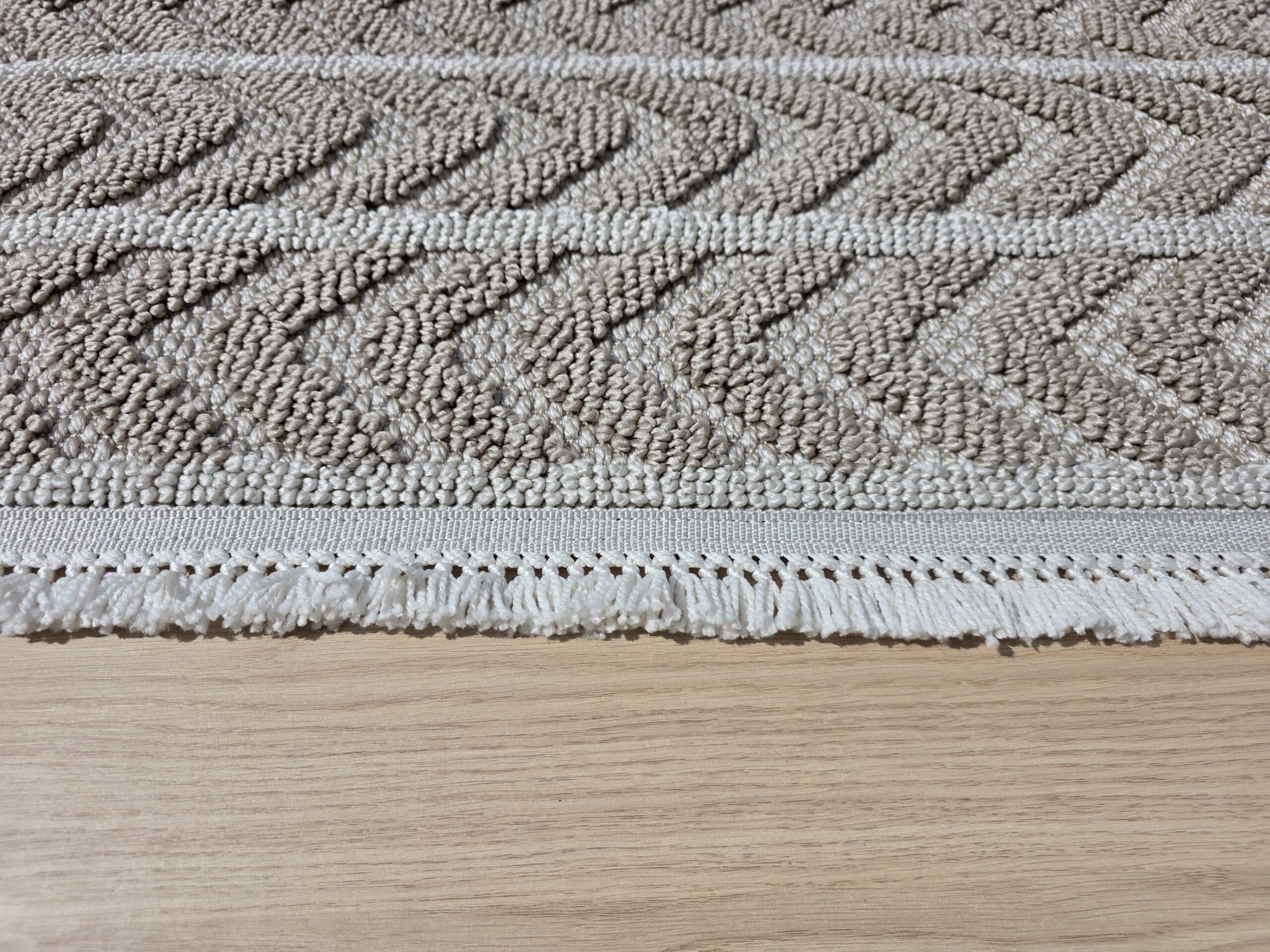 Dywan beżowy w jodełkę z frędzlami