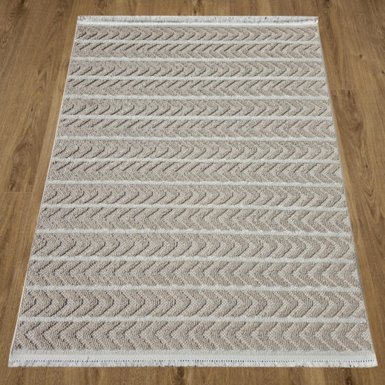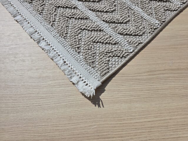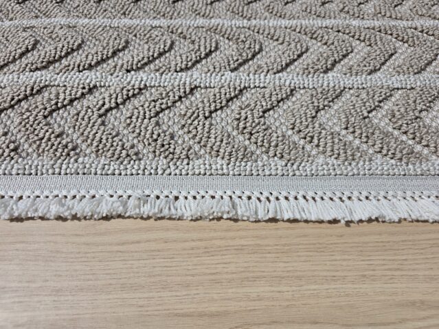 Postaw na ponadczasową elegancję w naturalnym wydaniu. Beżowy dywan z geometrycznym wzorem jodełki to idealny wybór do wnętrz, w których liczy się przytulność, harmonia i styl. Jasna kolorystyka optycznie powiększa przestrzeń, a subtelne frędzle na krótszych bokach nadają mu lekkości i charakteru. Miękka, gęsto tkana powierzchnia sprawia, że dywan jest niezwykle komfortowy w użytkowaniu, a przy tym trwały i łatwy do utrzymania w czystości. To model, który świetnie odnajdzie się w nowoczesnych, skandynawskich, boho oraz klasycznych aranżacjach.