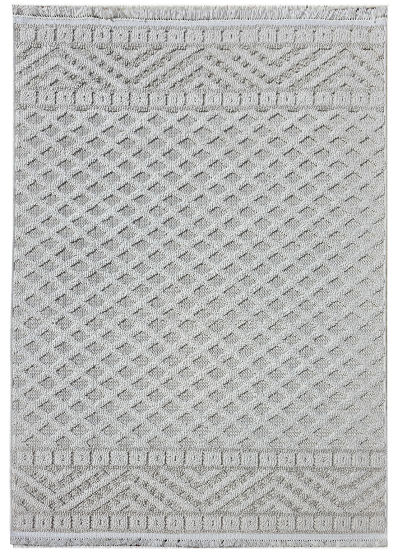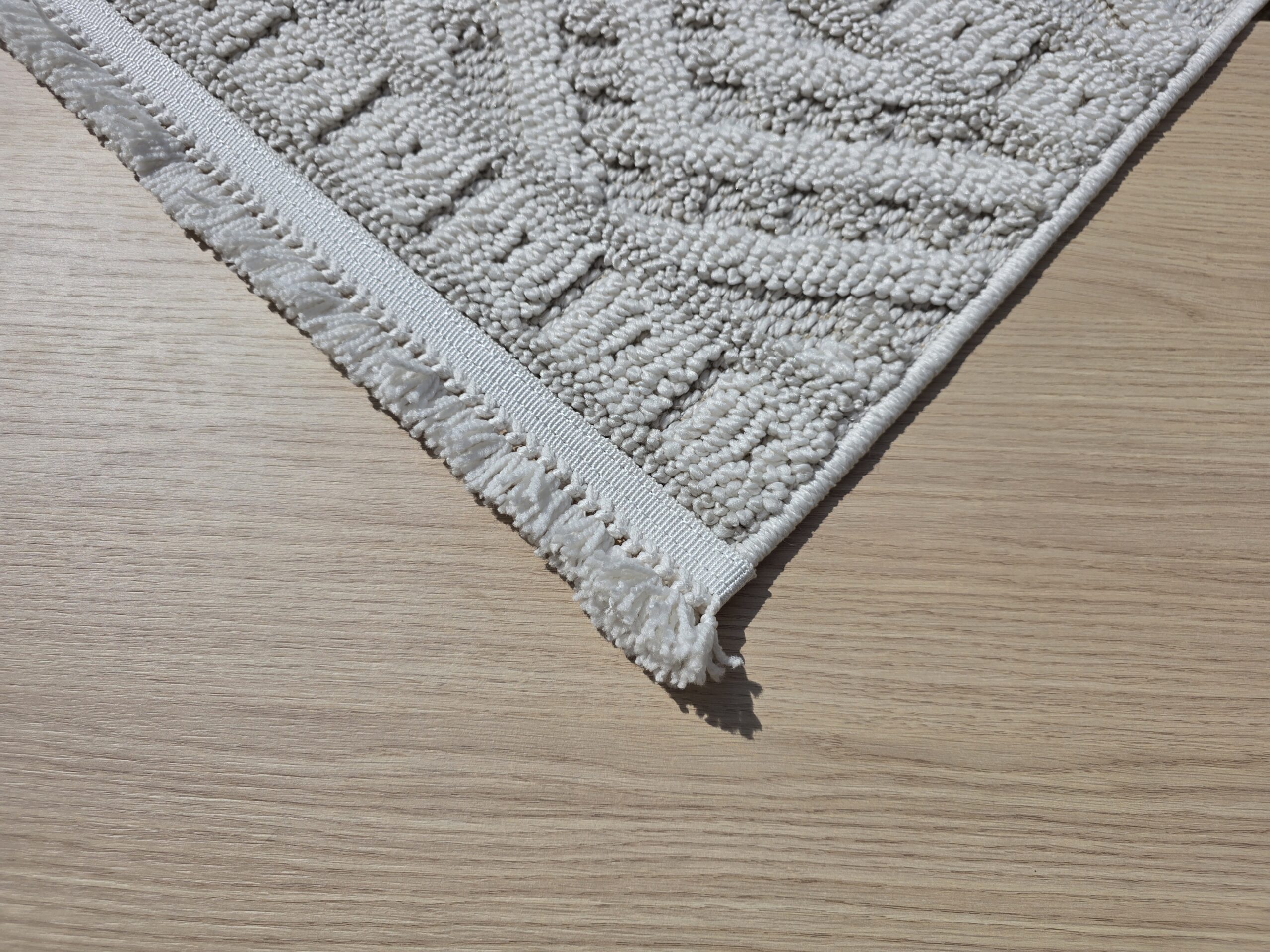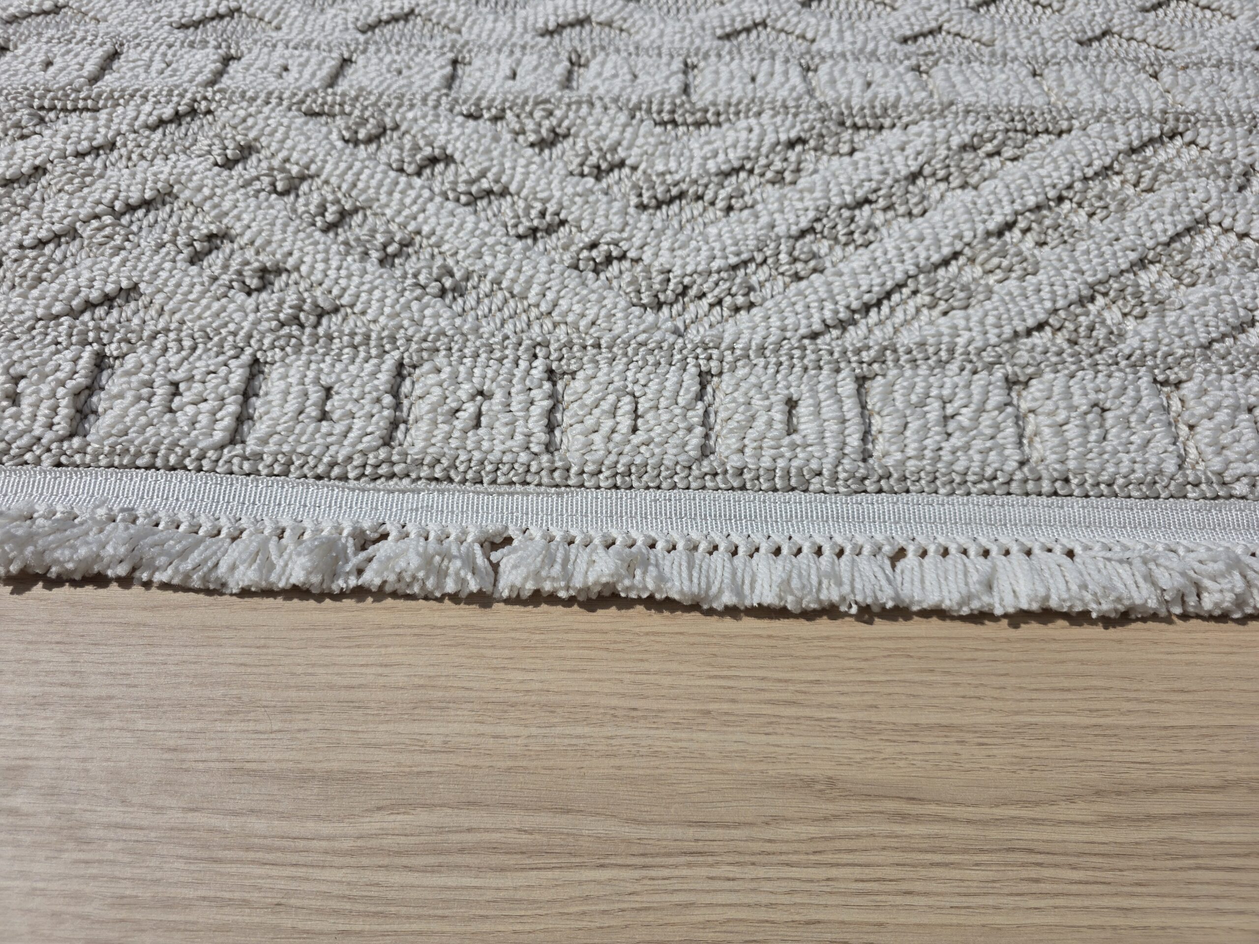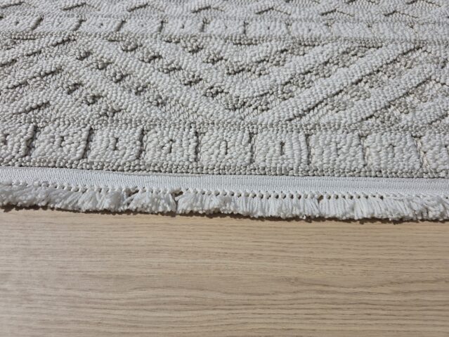 Dywan kremowy w jodełkę z frędzlami